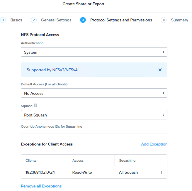 Here we’ll configure NFS protocol access
