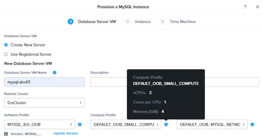 Here we’ll fast track the database provisioning process by simply selecting out-of-the-box software, compute and network profiles.