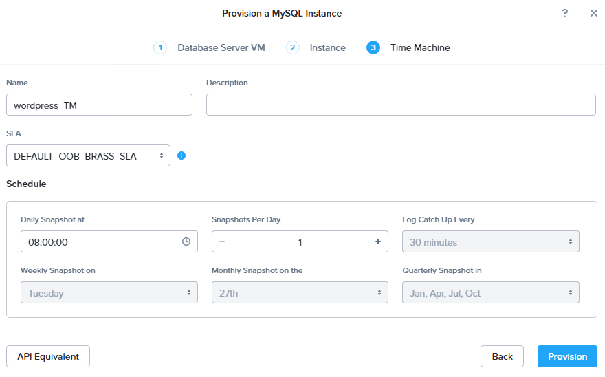 finally, you can select SLA profiles and customize snapshots settings etc. Click Provision to kick off the deployment.