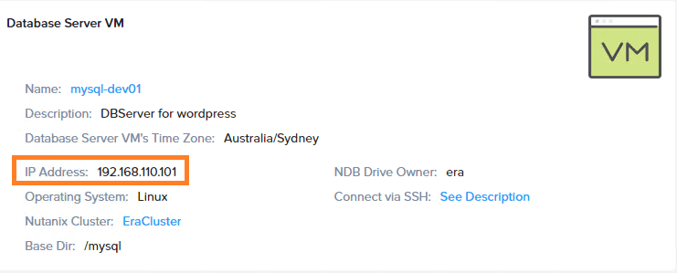 If you click into the test DB instance, you’ll find its IP address allocated by the NBD.