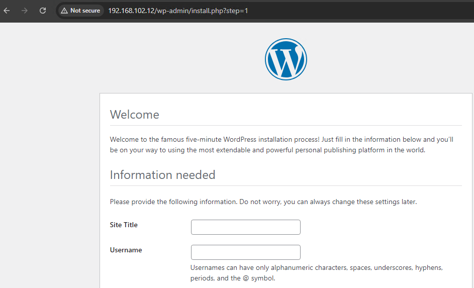 Now launch a browser page and navigate to the LB IP address, you should see the WordPress setup page comes online, perfect!