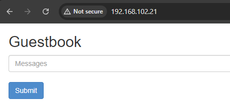 Open a browser page and hit the LB address, you should see the Guestbook page coming up.