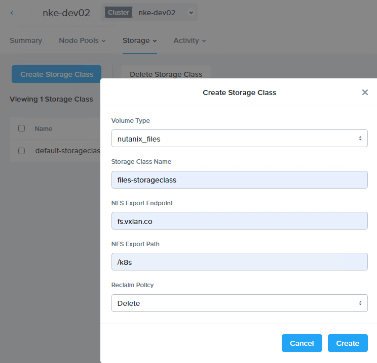 You should see the new (file-based) storage class popping up in the NKE cluster immediately.